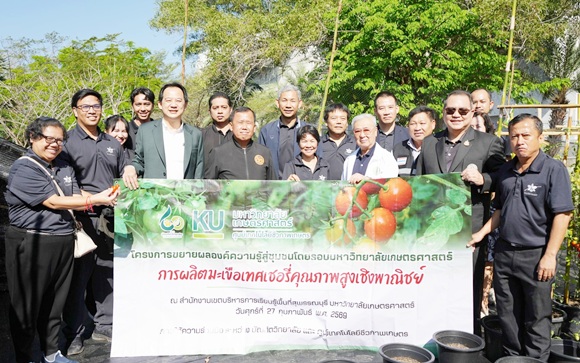 - โครงการขยายองค์ความรู้สู่ชุมชนโดยรอบมหาวิทยาลัยเกษตรศาสตร์วันศุกร์ที่ 27 กุมภาพันธ์ พ.ศ. 2569 🍀รองศาสตราจารย์ ดร.สมหวัง ขันตยานุวงศ์ รองอธิการบดีฝ่ายพัฒนาวิทยาศาสตร์สุขภาพและเขตพื้นที่สุพรรณบุรี กล่าวให้การต้อนรับผู้เข้าร่วมอบรม โครงการขยายองค์ความรู้สู่ชุมชนโดยรอบมหาวิทยาลัยเกษตรศาสตร์ เรื่อง “การผลิตมะเขือเทศเชอรี่คุณภาพสูงเชิงพาณิชย์” โดยมี ผู้ช่วยศาสตราจารย์ ดร.กฤษณ์ วันอินทร์ รองอธิการบดีฝ่ายนวัตกรรมและพันธกิจเพื่อสังคม… Read more: โครงการขยายองค์ความรู้สู่ชุมชนโดยรอบมหาวิทยาลัยเกษตรศาสตร์