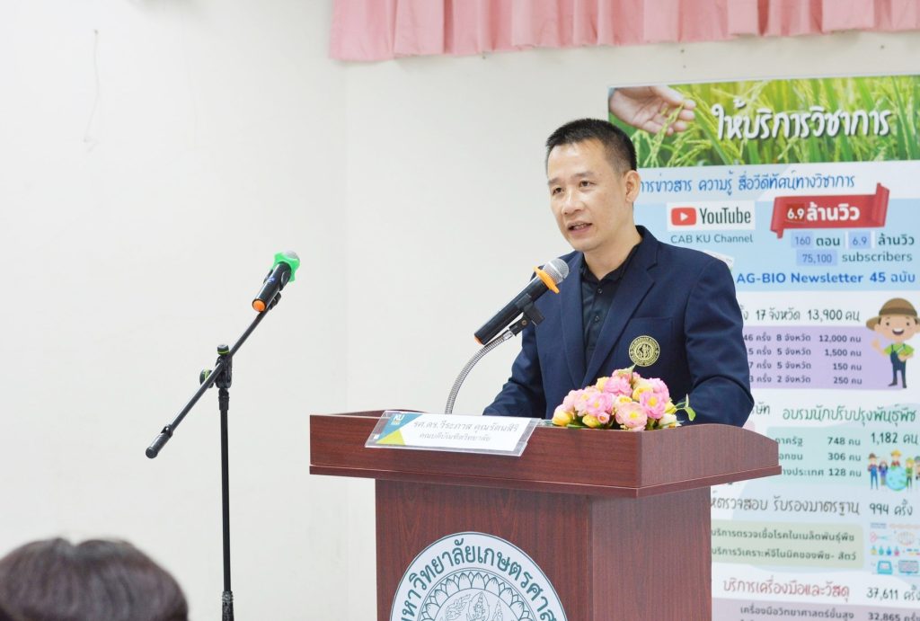 🍀รองศาสตราจารย์ ดร.สมหวัง ขันตยานุวงศ์ รองอธิการบดีฝ่ายพัฒนาวิทยาศาสตร์สุขภาพและเขตพื้นที่สุพรรณบุรี กล่าวให้การต้อนรับผู้เข้าร่วมอบรม โครงการขยายองค์ความรู้สู่ชุมชนโดยรอบมหาวิทยาลัยเกษตรศาสตร์ เรื่อง “การผลิตมะเขือเทศเชอรี่คุณภาพสูงเชิงพาณิชย์” โดยมี ผู้ช่วยศาสตราจารย์ ดร.กฤษณ์ วันอินทร์ รองอธิการบดีฝ่ายนวัตกรรมและพันธกิจเพื่อสังคม ผู้แทนรักษาการแทนอธิการบดี เป็นประธาน