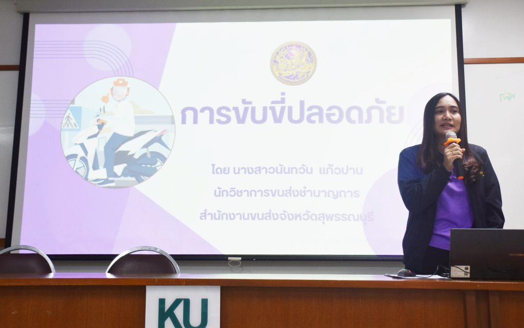 สำนักงานเขตบริหารการเรียนรู้พื้นที่สุพรรณบุรี มหาวิทยาลัยเกษตรศาสตร์ สุพรรณบุรี จัดโครงการให้ความรู้การอบรมเชิงปฏิบัติการ โครงการป้องกันภัยและบรรเทาอุบัติภัยและสาธารณภัย หัวข้อการขับขี่ปลอดดภัยและวินัยจราจร ให้กับนิสิตคณะสหวิทยาการจัดการและเทคโนโลยี บุคลากร และคณาจารย์มหาวิทยาลัยเกษตรศาสตร์ โดยรับความอนุเคราะห์บรรยายให้ความรู้โดย นางสาวนันทวัน แก้วปาน นักวิชาการขนส่งชำนาญการ สำนักงานขนส่งจังหวัดสุพรรณบุรี จัดขึ้น ณ อาคารอเนกประสงค์ มหาวิทยาลัยเกษตรศาสตร์ วันที่ 8 กันยายน 2568